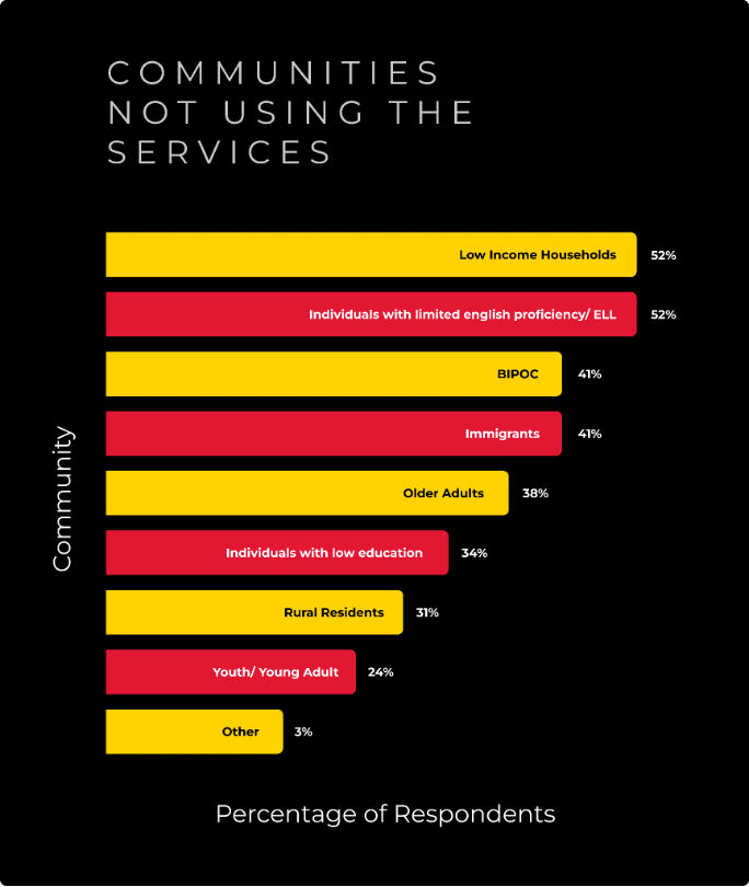 Figure 1: Responses to the question “Which communities are not utilizing the services that you offer?”