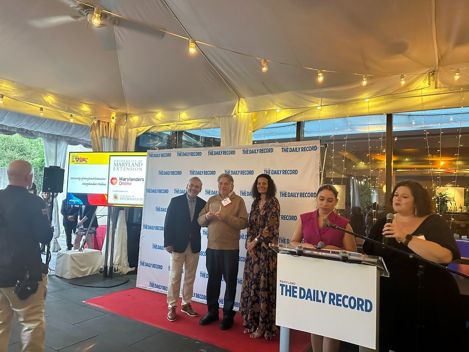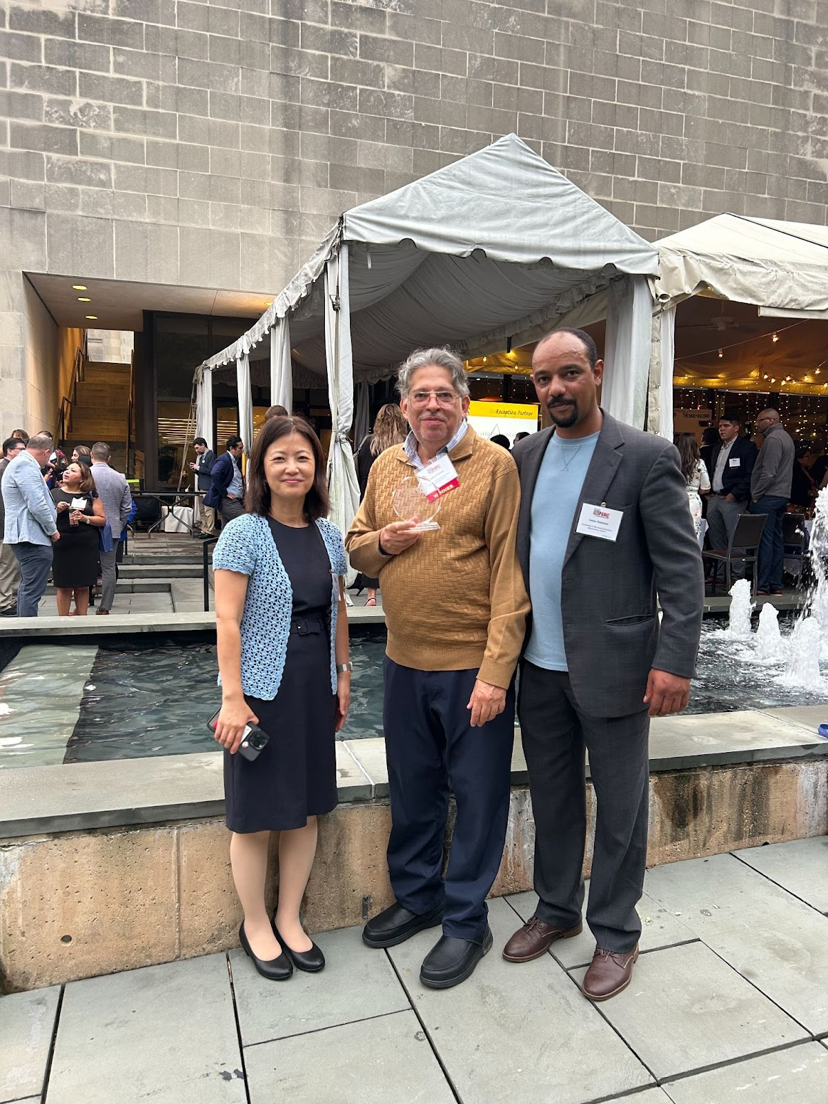 PICTURE 1: Dr. Jinhee Kim, Professor, UME Associate Director and Associate Dean, Gabriel Fumero, UME Marylanders Online Tech Educator, and Isaias Tesfalidet, Marylanders Online Project Director, receive the 2025 Maryland Hispanic Leadership Empowerment Award on September 25, 2025.